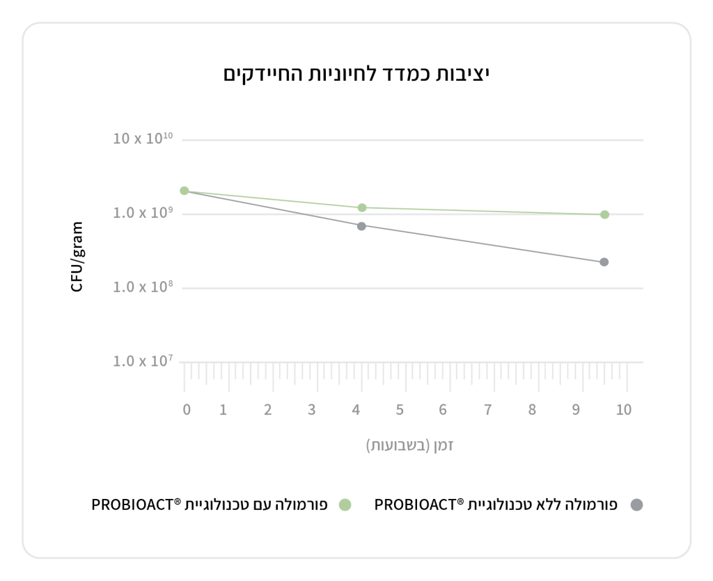 תרשים 3 – טכנולוגיית פרוביואקט תורמת ליציבות של החיידקים הפרוביוטיים