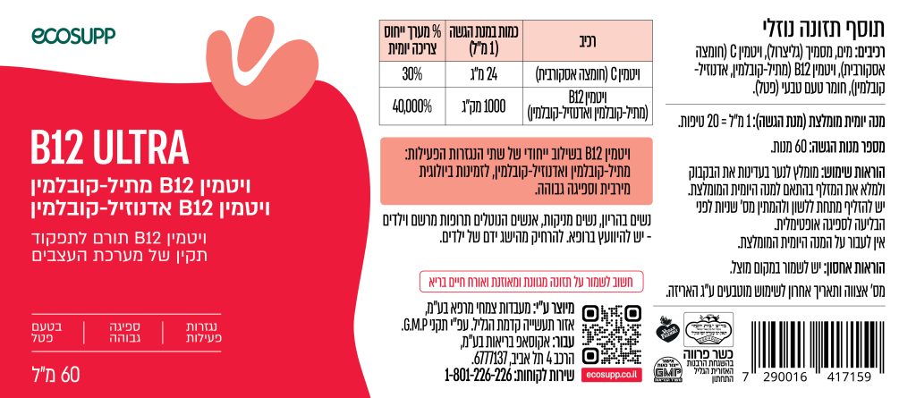 מוצרים נוזליים מתקדמים, כמו ULTRA B12 של אקוסאפ המשלב את 2 הנגזרות הפעילות (מתילקובלמין ואדנוזילקובלמין), מספקים צורות פעילות שניתנות לניצול מהיר בתהליכי אנרגיה ומטבוליזם.