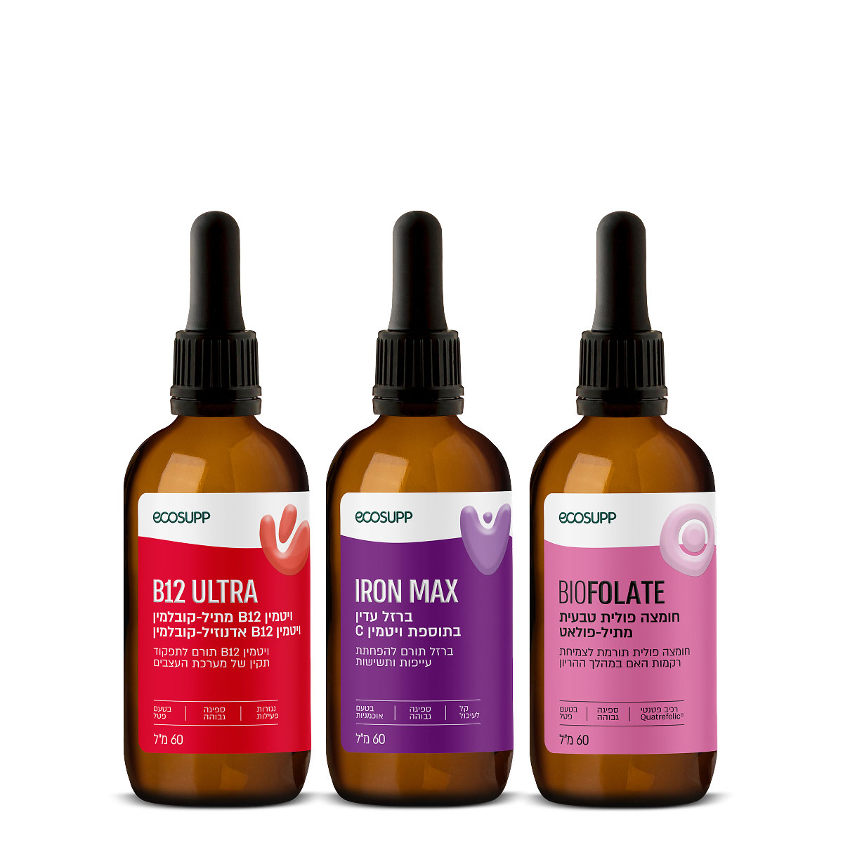 ברזל נוזלי בטכנולוגיית TRAACS כמו במוצר IRON MAXשל אקוסאפ, מציג ספיגה גבוהה ונוחות עיכולית-ללא תופעות לוואי למי שמעדיף תצורה נוזלית ולעומתו, ברזל בטכנולוגיית בידלטס בכמוסות ליחפוזומליות עם מנגנון לשחרור מושהה- מספק גם הוא ספיגה גבוהה ונוחות עיכולית מרשימה- למי שמעדיף בתצורת כמוסות.