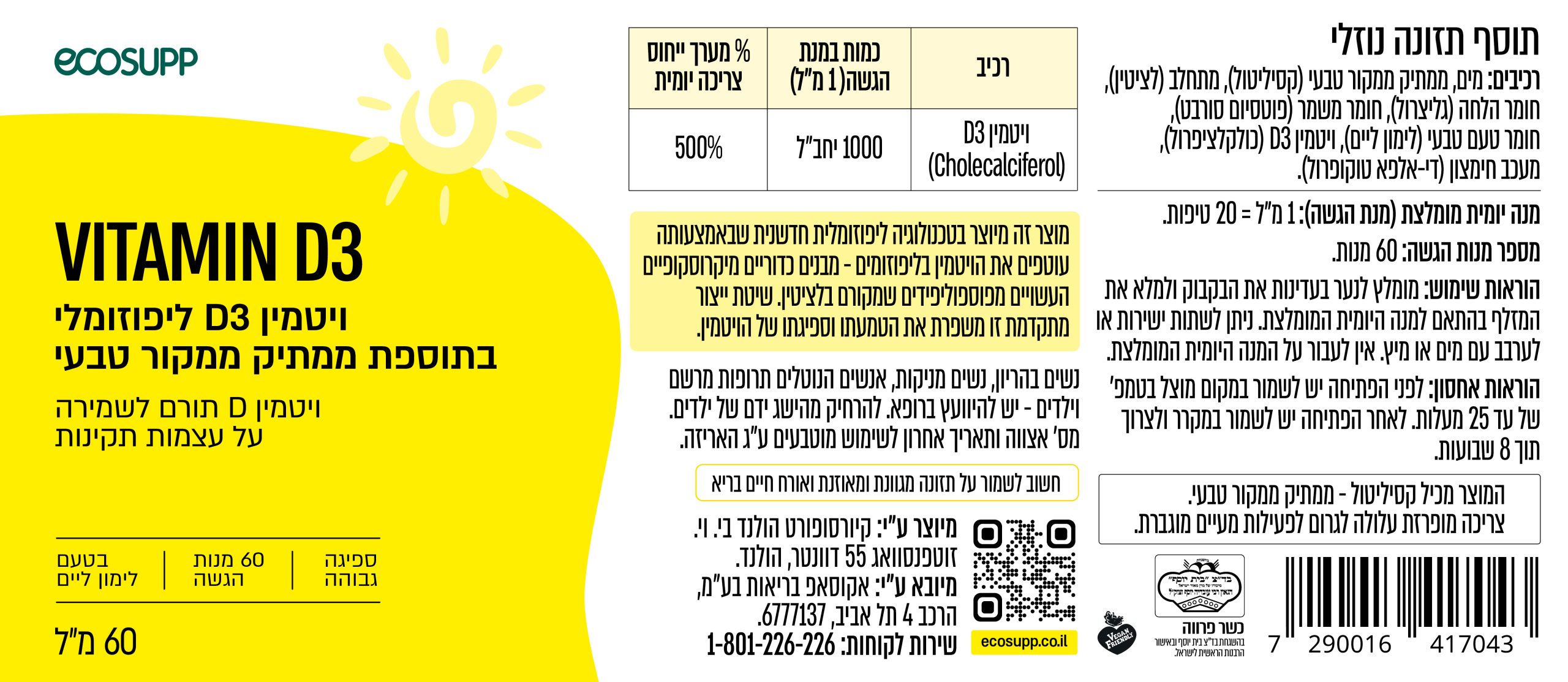 • ויטמין D3 טבעי ממקור צמחי, בטעם לימון ליים עדין