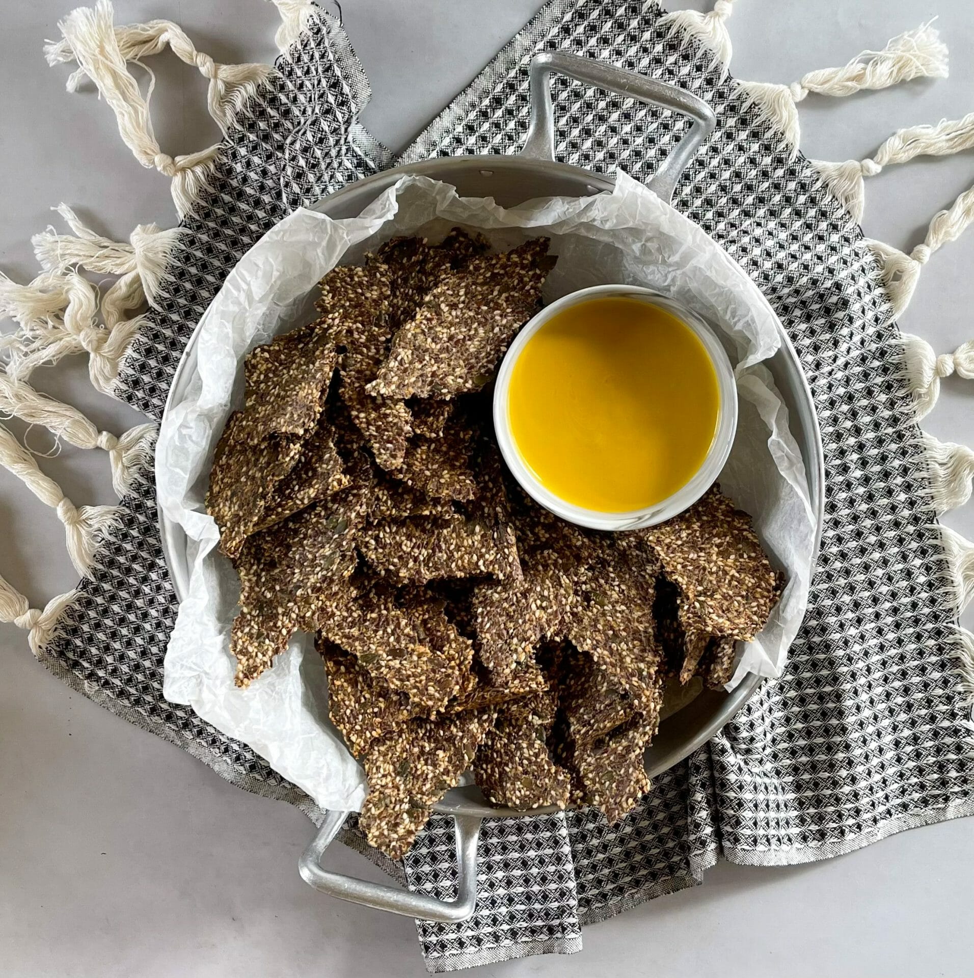 דף הבית > טעים ובריא – פינת המתכונים > טחינה כורכום וקרקר פשתן